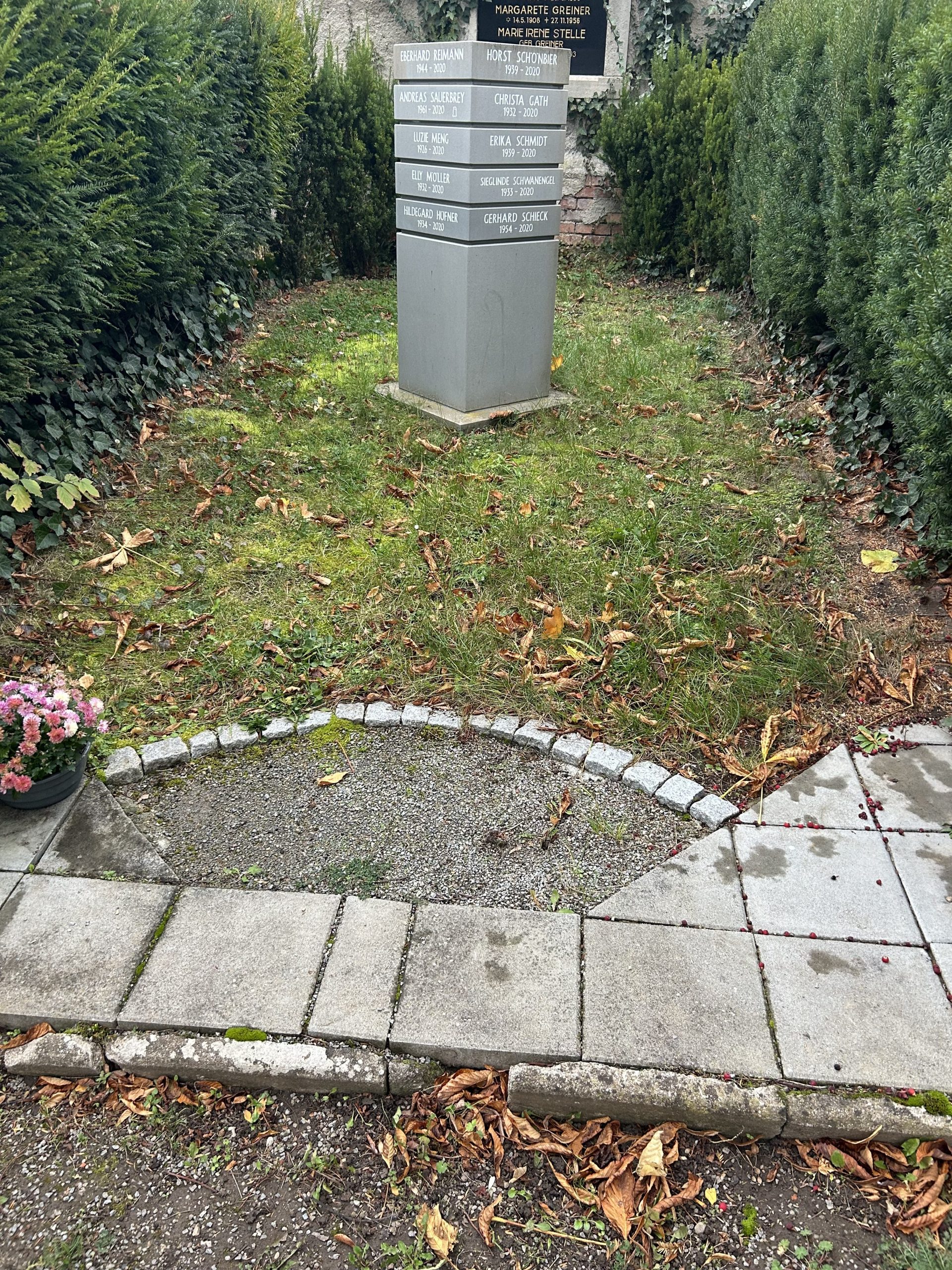 Es wurde lange nicht gemäht die Hecken auf dem gesamten Friedhof wurden nicht geschnitten der Kies für die Steckvasen wurden nicht mehr aufgefüllt sodass man keine Vase mehr aufstellen kann.
